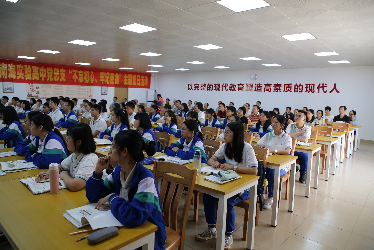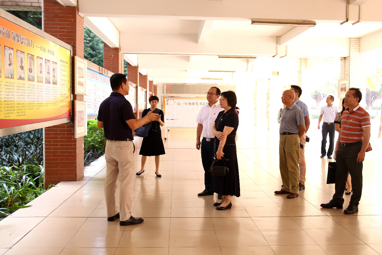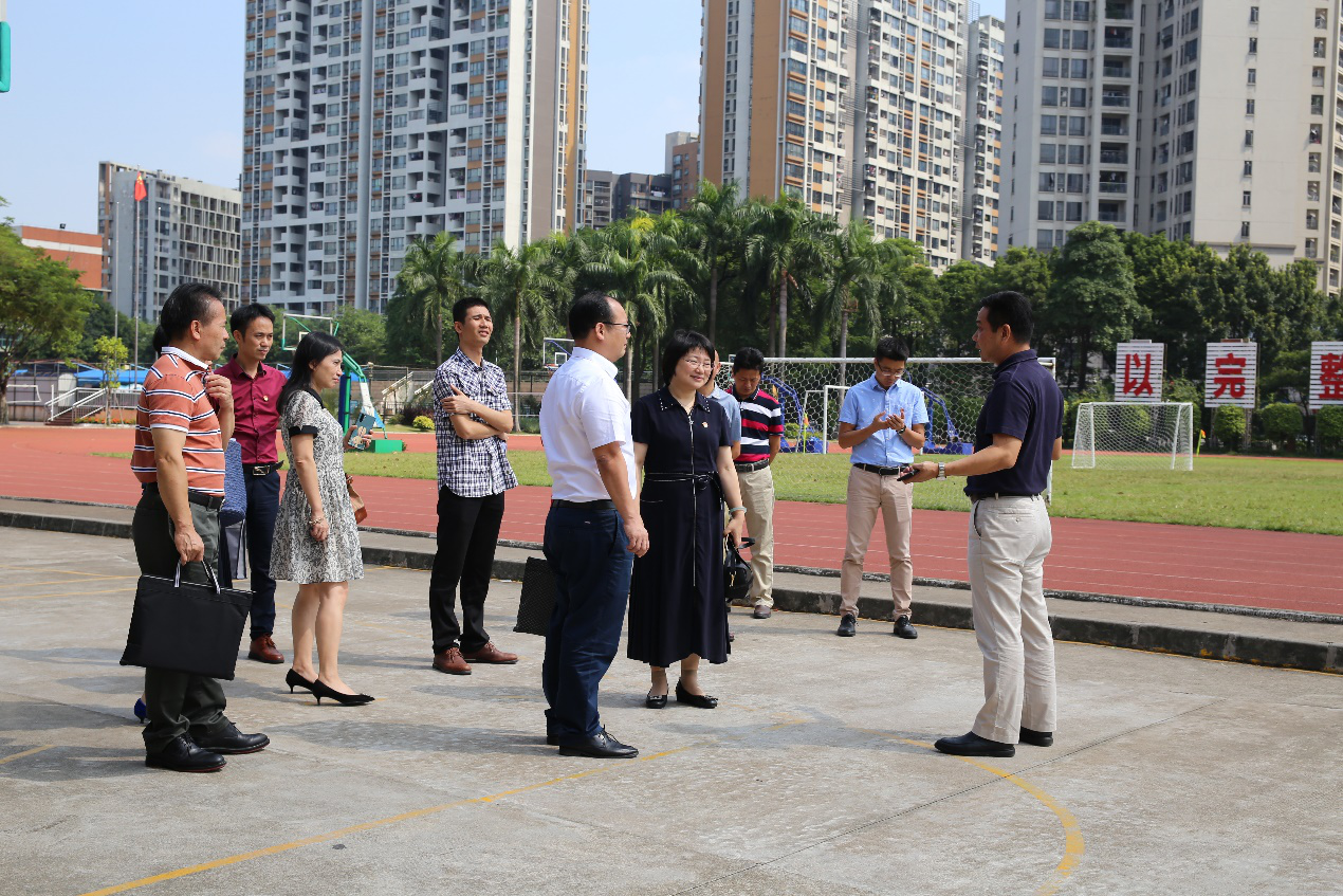 |   2019年10月17日,以佛山市教育局副局长胡英同志为组长的市教育局主题教育调研指导组莅临我校开展“不忘初心、牢记使命”主题教育主题调研和指导工作,南海区教育局副局长卢达生及区教育局相关科室领导陪同参加了本次调研活动。我校高度重视,校党总支书记、校长梁建伟带领全体党政领导班子成员参与了本次调研。   在梁建伟书记的陪同下,各位领导巡视了整个校园,在实地走访过程中,梁建伟书记向调研组汇报了我校 “不忘初心、牢记使命”主题教育工作的进展情况,强调我校始终坚决落实立德树人根本任务,努力培养德智体美劳全面发展的人才。学校将党建工作与学校教育教学工作有机结合,在党建引领促进办学方面取得一定的成效。调研组对我校浓厚的主题教育氛围以及坚持坚持社会主义办学方向所取得的一系列工作成绩给予了充分的肯定。