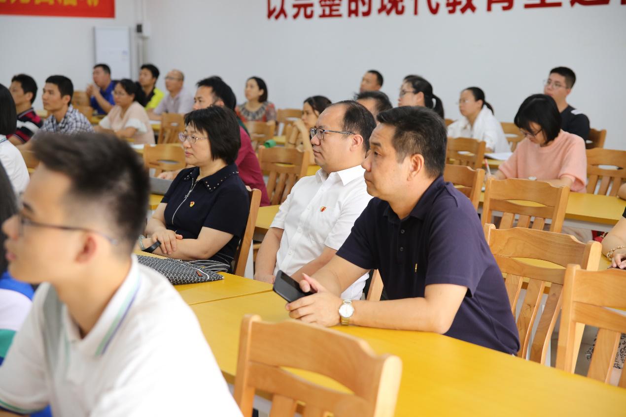 小型座谈会   随后,调研组一行还专门到第二讲学厅听取了由文科支部支委、政治科组梅津湘同志主讲的“不忘初心、牢记使命”主题教育专题党课,参与党课的有学生,还有部分党员。