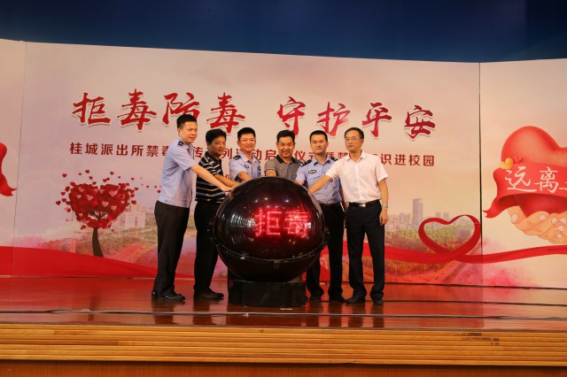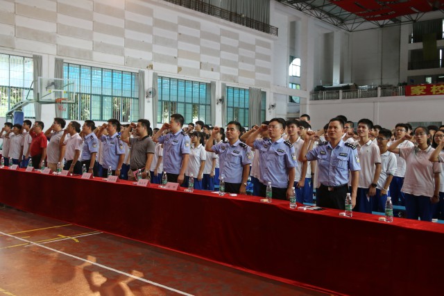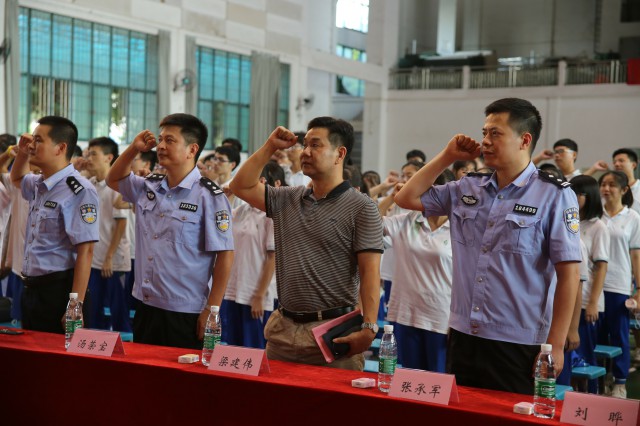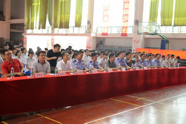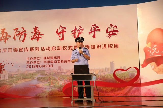 为深入学习贯彻党的十九大精神,全面落实《中华人民共和国禁毒法》和上级公安机关禁毒工作部署,进一步深化禁毒严打整治、禁吸戒毒和宣传预防教育工作,全力推进“飓风2018”专项打击行动,坚决打好禁毒人民战争,我校结合“6•26”国际禁毒日、“6.27”青少年毒品预防教育和“飓风2018”专项打击行动等工作,桂城派出所在华附南海实验高中开展禁毒宣传教育活动,提高广大青少年拒毒防毒的意识,切实抓牢抓实抓好桂城辖区禁毒工作,为创建无毒社区、无毒校园和无毒城市贡献力量,同时也是我校佛山市创建毒品预防教育示范学校系列活动之一。 本次活动于2018年6月29日下午15:00—17:00在华附南海实验高中体育馆举行,出席本次活动的由主办方桂城街道党工委委员、桂城派出所汤荣宝所长等公安社区民警和承办方学校党委书记校长梁建伟等领导、学生、桂城街道社工等共计200多人。(图:梁东群 文:罗伟东)