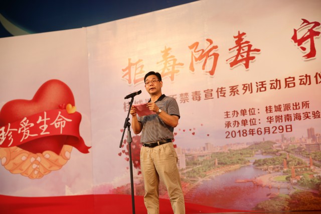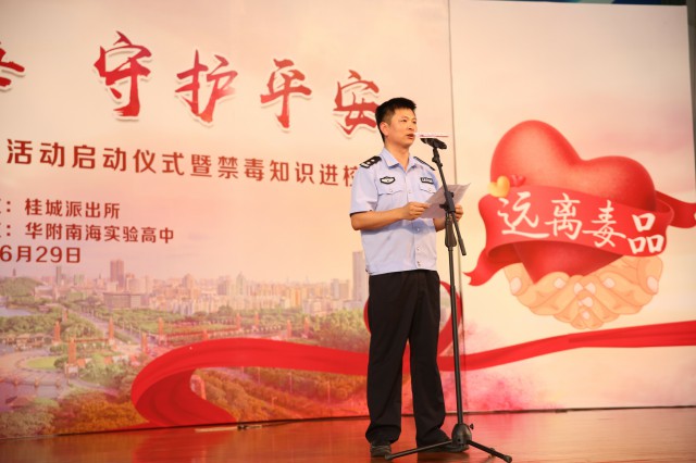 桂城派出所汤荣宝所长发表题为“拒毒防毒 守护平安”的禁毒宣言