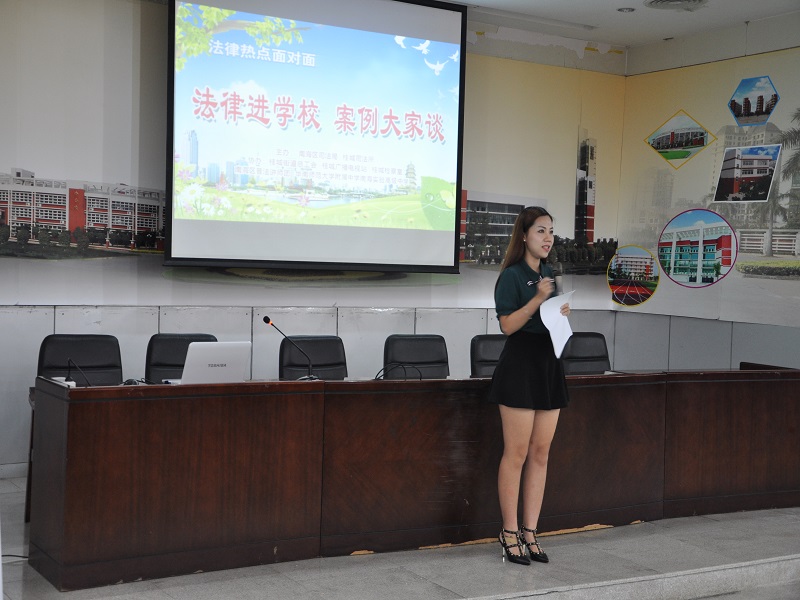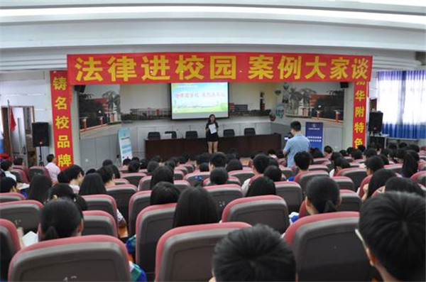 2017年5月25日下午3时,由南海区司法局、桂城司法所主办的,桂城街道总工会、南海区普法律师团、桂城广播电视站等共同协办的《法律进学校 案例大家谈》法律热点面对面走进华附南海实验高中,展开一场别开生面的校园普法活动,为我校校园生活增添光彩。 本次法律讲堂吸引了我校上百学生参与,同学们争先到场“霸”头位等待法律课堂的开始。广东杰泰律师事务所律师唐达先生和广东循理律师事务所律师邵美容女士作为本次讲堂的特邀嘉宾,他们先后针对高中生热点法律问题,围绕“网游”、“校园欺凌”“恋爱侵权”、“打架斗殴”四个校园案例进行深入浅出的互动、讨论、交流以及深度的剖析。 在整个法律讲堂中我校学生认真的听讲和分析,讲堂中的2位律师对我校学生在对案例的分析都竖起大拇指, 称赞我校学生措辞犀利,回答法律问题很专业,思维敏捷。 通过本次法律进校园的活动,增加了我校法治氛围和增强了学生的自我保护意识和自我维权意识,同时我校也会多举办类似的法律、法治题材进入我校,让普法活动深入人心。(文:罗伟东 图:梁东群)