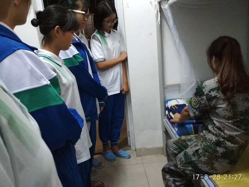 内务篇 结束了白天忙碌的军政训练后,所有学员晚上迎来了标准化内务学习。全体教官、生活老师深入宿舍指导,华附南海实验高中宿舍内务标准一直以来以讲究美观、科学、人性化而备受称道。学习过程中教官不厌其烦地教,学员们耐心细致地听,在细枝末节举手投足之间收到了很好的美育熏陶。
