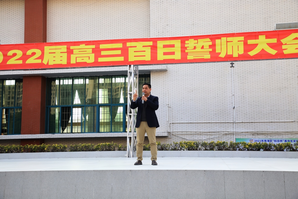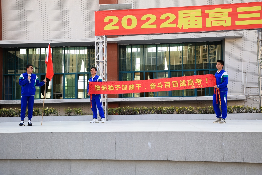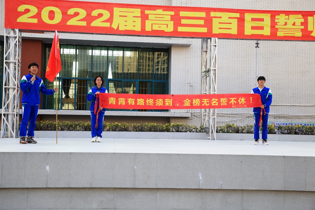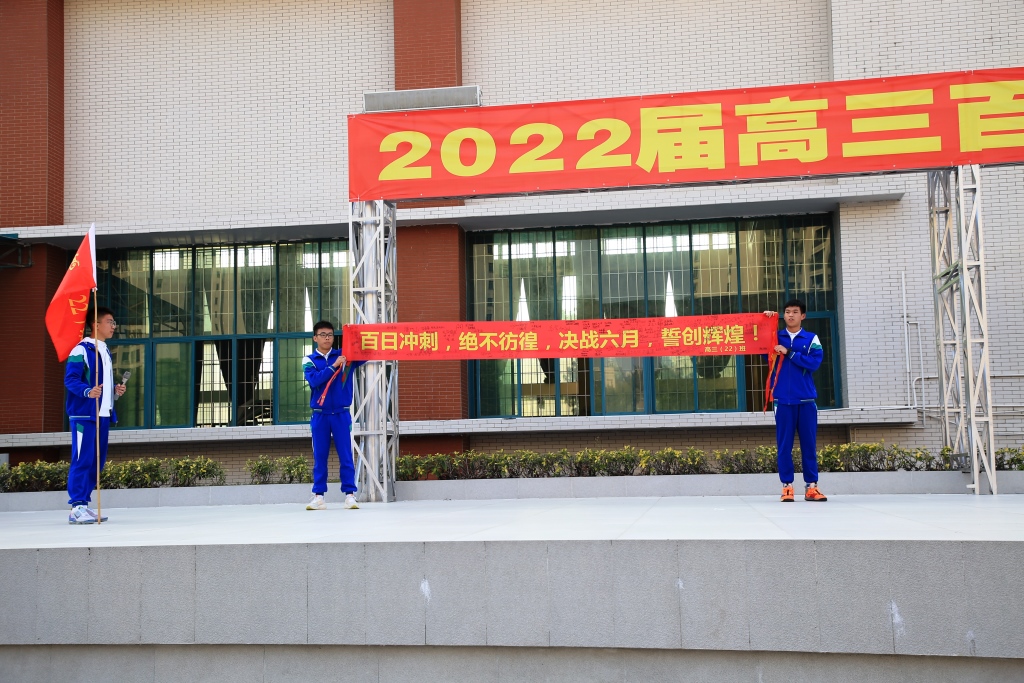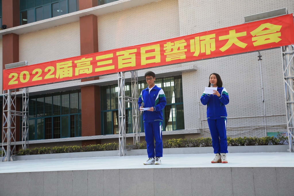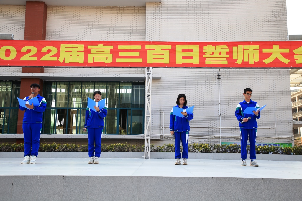 春风携着暖阳回归,高考100天倒计时的钟声也悄然响起。为进一步激发我校高三学子的学习热情,昂扬斗志,助力高考备考有效推进,2月26日下午我校举行了隆重又热烈的高考百日誓师大会。2022届高三全体师生和校领导齐聚田径场,用铮铮誓言迎战六月高考。活动由学生陈圣洋和林恩希主持。