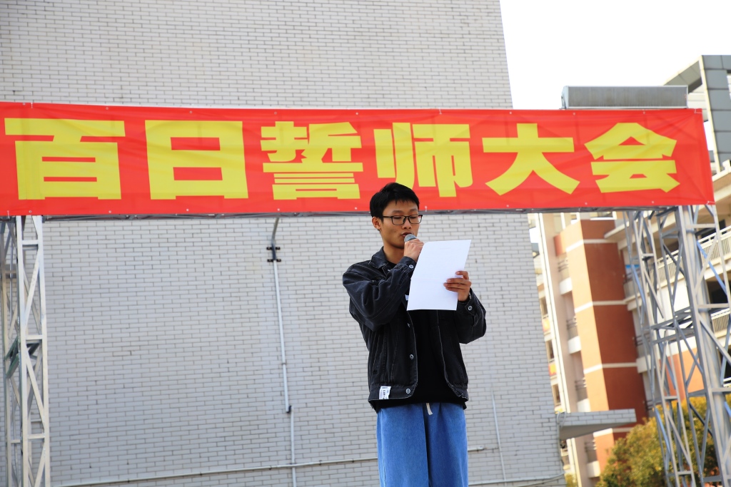 为激励高三学子向优秀榜样学习,努力拼搏,在高考中取得优异成绩,我校还邀请了2021届高三(18)班学生代表、宋庆龄奖学金获得者、目前就读于中山大学的龚准令同学回校发言。他勉励同学们要珍惜时间,再奋斗一百天。同时也要讲究学习方法和学习态度,劳逸结合。最后他还向学校、老师和同学们表达了最美好的祝愿。