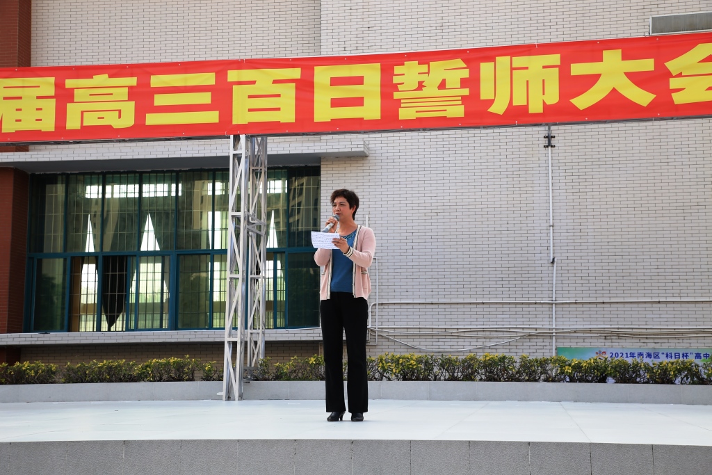 校党委书记、校长梁建伟出席了本次活动,对高考百日冲刺进行了战前总动员。梁校在发言中对同学们做了三点提醒。第一,要有时间观念。百日冲刺要落实到具体行动上,争分夺秒,全力以赴。第二,要冷静思考教与学的关系。在最后一百天里,要紧跟老师步伐,脚踏实地,务实科学。第三,要保持良好的心态与状态,安心、静心备考。简短有力的话语中,饱含着梁校对同学们的鼓励与深切期望。最后,梁校还祝愿高三同学在下周的英语听说考试中旗开得胜!