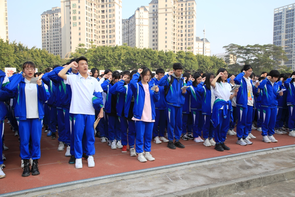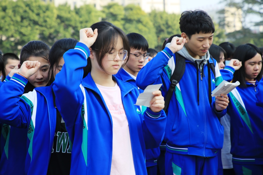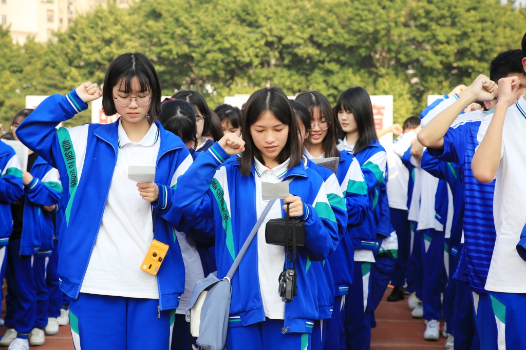 誓师大会的最后,高三(23)班黄雪儿同学作为领誓人,带领高三全体同学进行宣誓。豪壮的誓词响彻校园天空,彰显出同学们实现梦想的决心和再创辉煌的昂扬斗志。