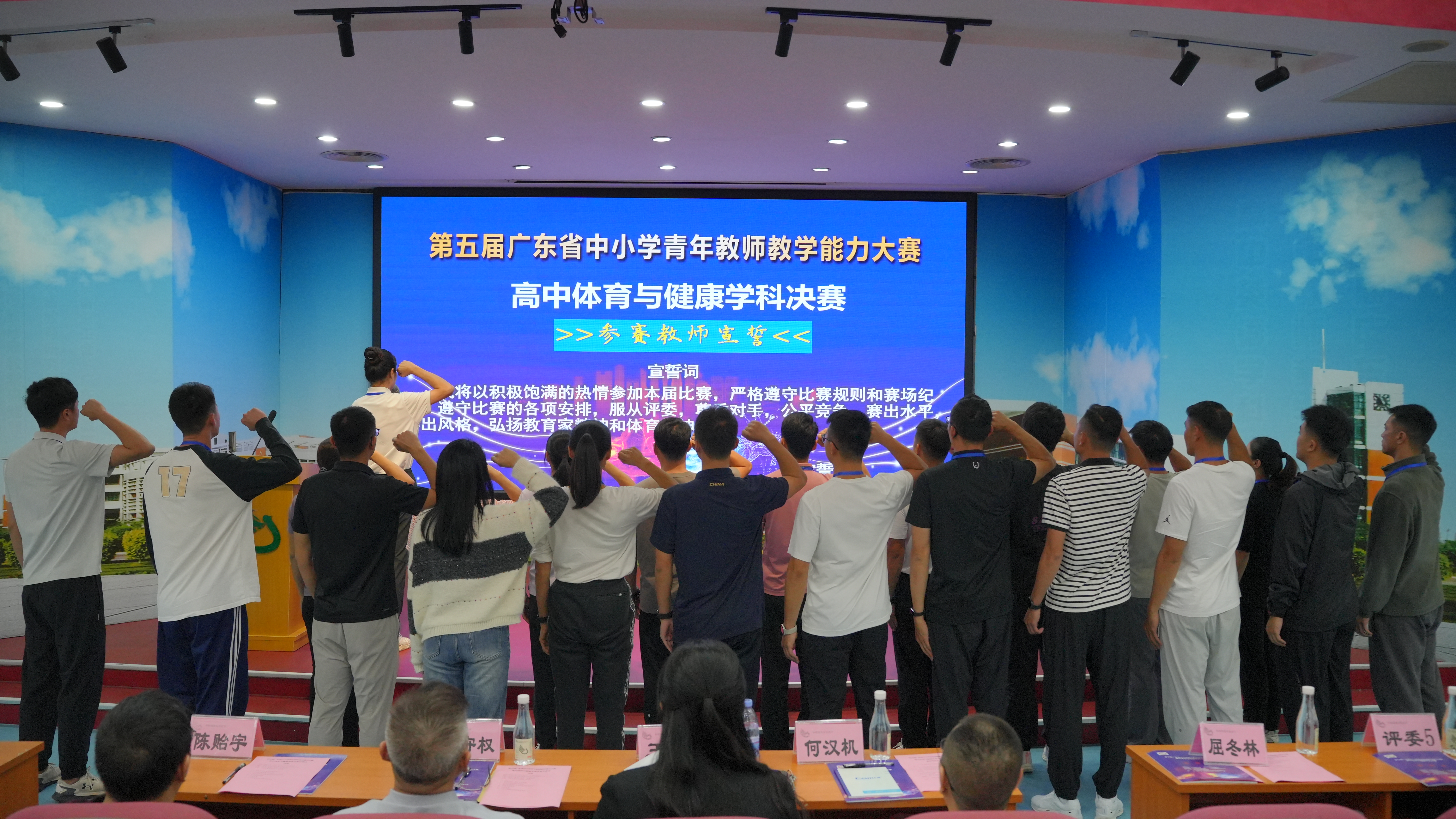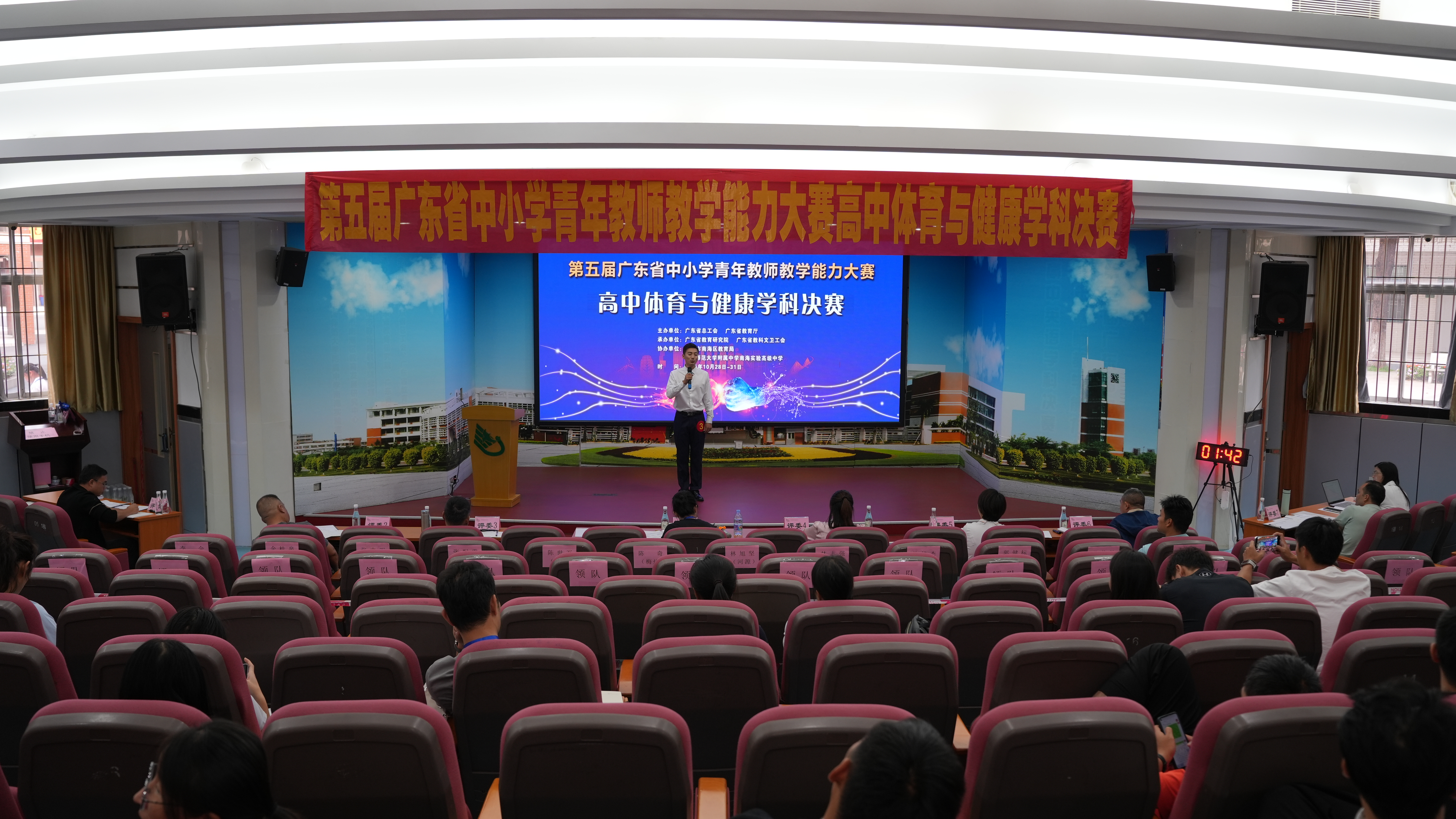决赛为两个阶段。决赛第一阶段,来自全省的23位参赛教师通过演讲与答辩、教学设计汇报和运动能力展示进行学科专业知识、职业能力和专业能力展示。第一阶段比赛过程精彩纷呈,风格各具特色,不仅充分展现了参赛教师们自身扎实的教学基本功、以生为本的立德树人教育观和过硬的课堂教学能力,同时还展现了年轻教师的激情和创造力。