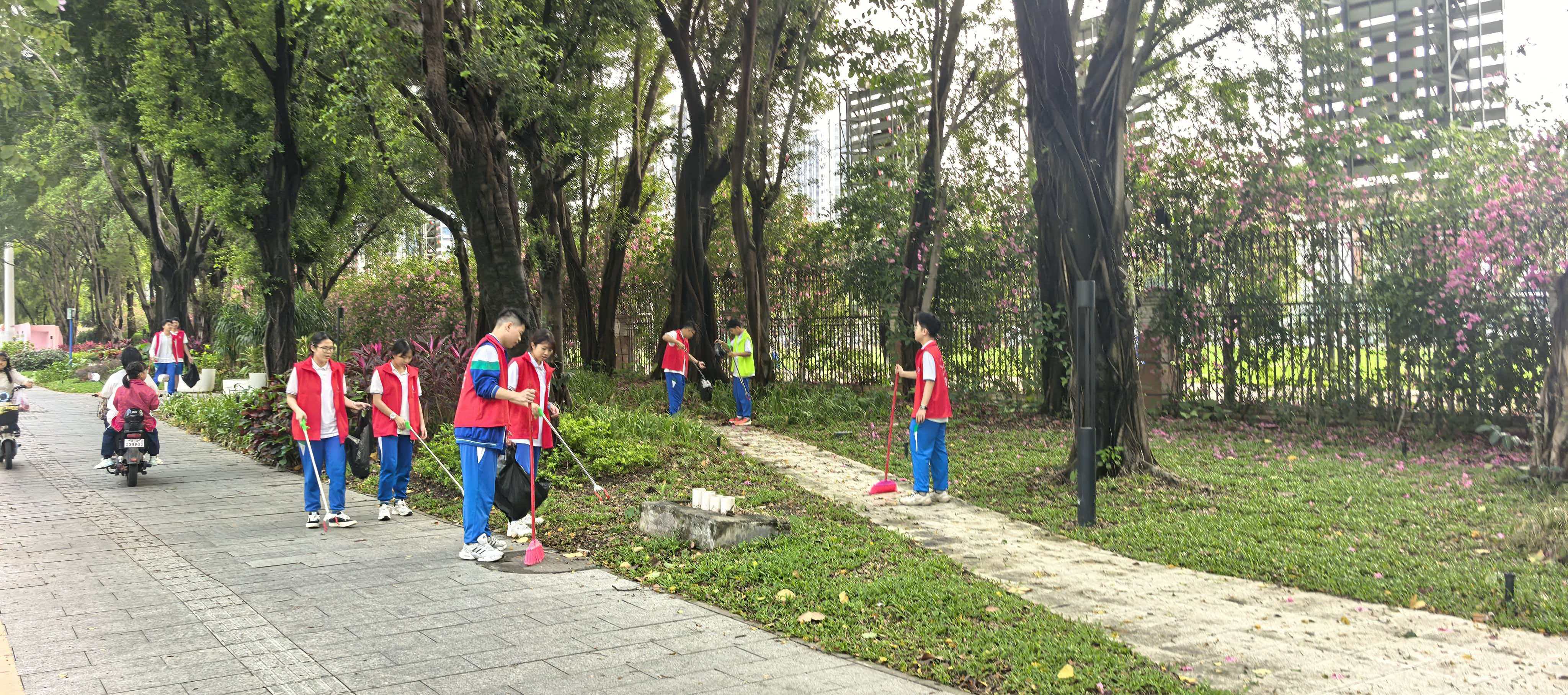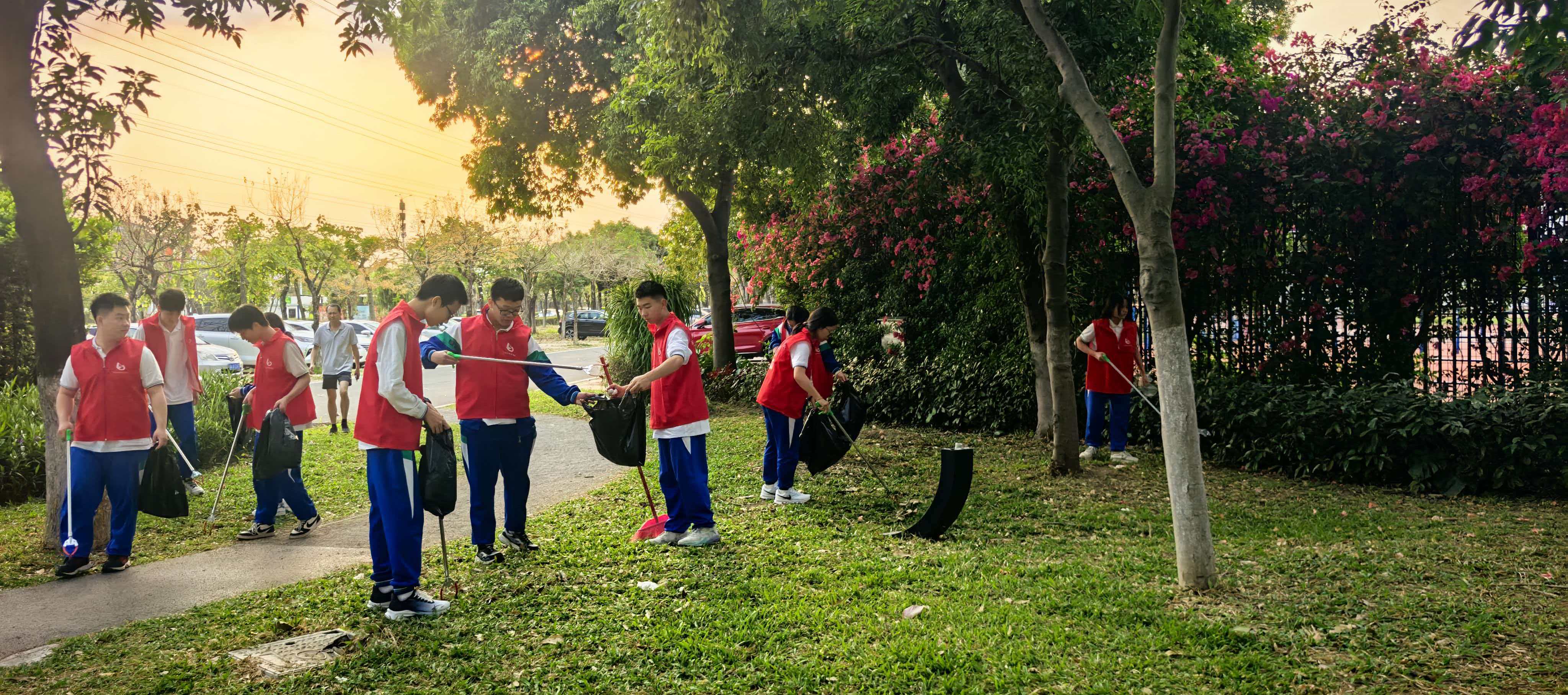 环境卫生美化:实施校园内外过道清洁志愿服务,消除卫生死角,共建美好家园,唤醒师生环境保护意识。